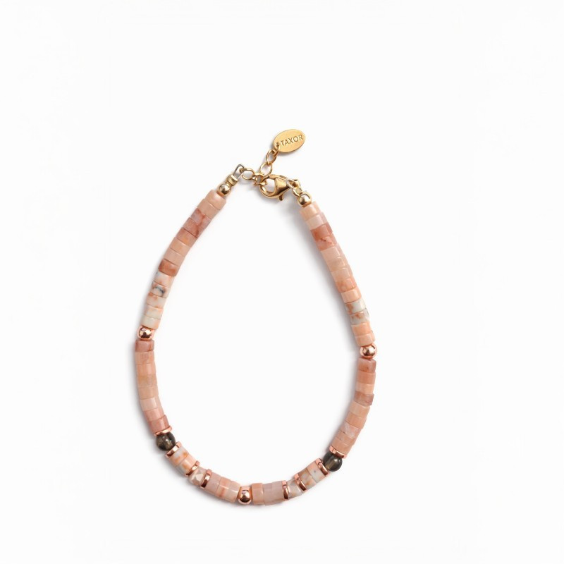Unikalna bransoleta marki Taxor, łącząca w sobie naturalne piękno kamieni i elegancki design. Biżuterię z kamieniami naturanymi wykonujemy ręcznie w naszej pracowni z dbałością o każdy detal. Kompozycję tworzą jaspis, hematyt oraz kwarc, które razem nadają biżuterii wyjątkowego charakteru. Całość dopełniają srebrne i metalowe elementy dopracowane z dbałością o każdy detal. Każdy egzemplarz jest wyjątkowy - kamienie naturalne mogą różnić się odcieniem i strukturą, co podkreśla ich unikalny charakter.