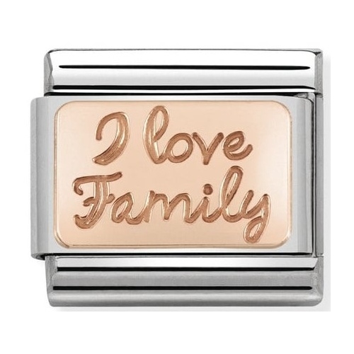 Element Nomination I love Family wykonany ze stali szlachetnej oraz różowego złota próby 375.
