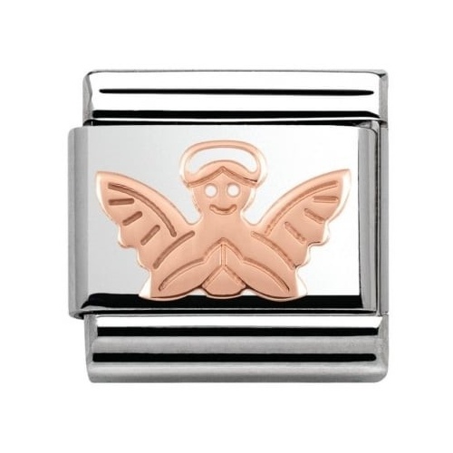 Element Nomination Anioł wykonany ze stali szlachetnej oraz 9-cio karatowego różowego  złota.