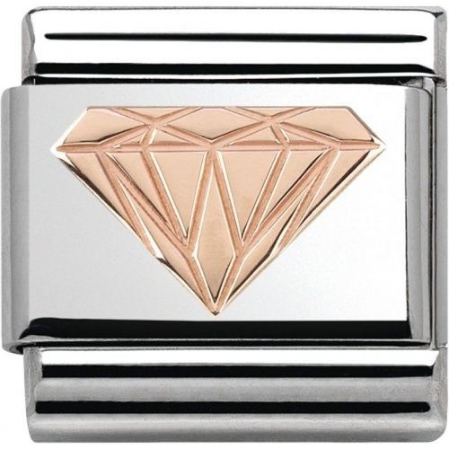 Element Nomination Diament wykonany z najwyższej jakości stali szlachetnej oraz 9-cio karatowego różowego złota.