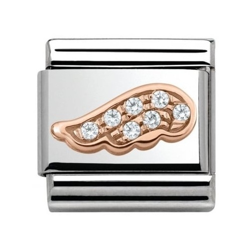 Element NOMINATION Skrzydło z biała cyrkonią wykonany ze stali szlachetnej ozdobionej różowego złota próby 375.