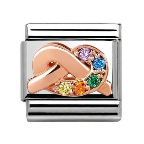 Element NOMINATION Supeł z kolorowymi cyrkoniami wykonany ze stali szlachetnej oraz różowego złota próby 375.