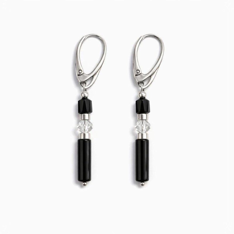 Unikalne kolczyki marki Taxor, łączące w sobie naturalne piękno kamieni i elegancki design. Biżuterię z kamieniami naturanymi wykonujemy ręcznie w naszej pracowni z dbałością o każdy detal. Kompozycję tworzą onyks, hematyt oraz połyskujące kryształki svarowskiego, które razem nadają biżuterii wyjątkowego charakteru. Całość dopełniają srebrne i metalowe elementy dopracowane z dbałością o każdy detal. Każdy egzemplarz jest wyjątkowy - kamienie naturalne mogą różnić się odcieniem i strukturą, co podkreśla ich unikalny charakter.