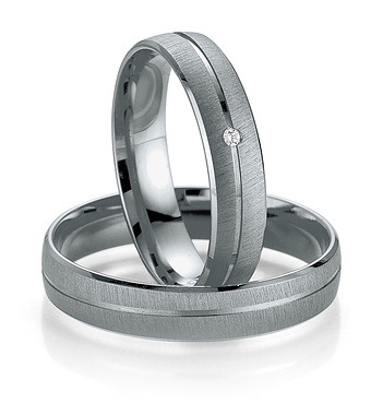 Obrączki platynowe Breuning wykonane z platyny próby 950 lub 600 w technologii bezszwowej. W modelu damskim można oprawić diamenty. W standardowej wersji producent proponuje oprawę brylantu o masie 0.02 ct, czystości SI i barwie H. Parametry brylantu potwierdzone są certyfikatem.