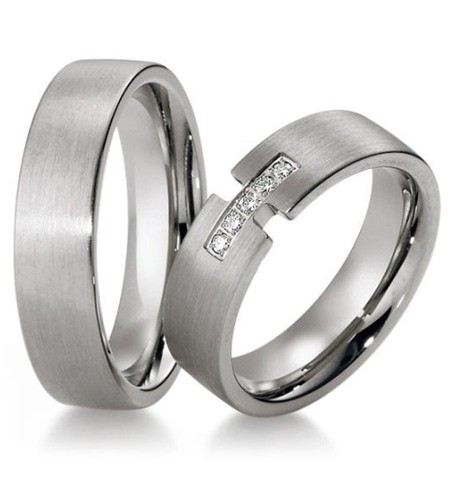Obrączki z białego złota palladowego z ekskluzywnej kolekcji Premium firmy Breuning wzór 3120 są, jak wszystkie pozostałe tego producenta, wykonane w technologii bezszwowej. Proponowana szerokość tego modelu wynosi 6 mm a powierzchnia zewnętrzna jest matowana. W wersji dla Panny Młodej producent proponuje oprawienie pięciu brylantów o łącznej masie 0.075 ct, barwie H i czystości Si. Dodatkowo damska obrączka ozdobiona jest głębokimi nacięciami po obu stronach w miejscu oprawy diamentów, co dodatkowo podkreśla wyjątkowość i oryginalność tego modelu.