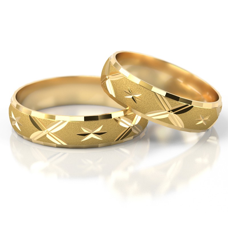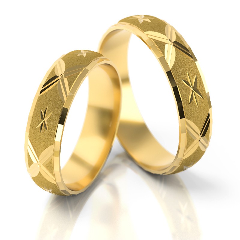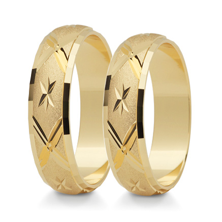 Obrączki z żółtego złota STELMACH wykonane w technologii bezszwowej.  Powierzchnia matowana (mat nr 5), przy krawędziach złoto wypolerowane.