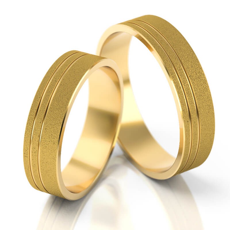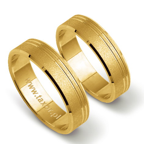 Standardowa szerokość 5 mm jest dla tego modelu optymalna, ale na życzenie klienta możemy ją zmienić w zakresie od 4 do 6 mm. W ten sposób np. obrączka męska może być szersza od damskiej. Można również zmienić kolor złota, rodzaj matu a w obrączce damskiej oprawić brylanty lub cyrkonie. Istnieje też możliwość wykonania tego wzoru w wersji pogrubionej z większą wysokością i większym promieniem wyoblenia.1
