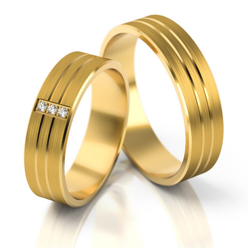 Standardowa szerokość obrączki wynosi 5.3 mm, ale jest możliwość wykonania obrączek o innych szerokościach w zakresie od 5.3 mm do 10 mm. Wiele par decyduje się obecnie na zamawianie obrączek o różnej szerokości np. węższą dla Pani a szerszą dla Pana Młodego. W obrączce damskiej możemy oprawić brylanty lub cyrkonie. Można również zmienić kolor złota i rodzaj matu. Istnieje też możliwość zwiększenia wagi obrączek i wykonania tego wzoru w wersji bardziej masywnej.*
