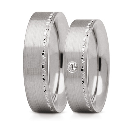 Standardowa szerokość obrączki wynosi 5 mm, ale jest możliwość wykonania obrączek o większej szerokości - do 8 mm. Wiele par decyduje się obecnie na zamawianie obrączek o różnej szerokości np. węższą dla Pani a szerszą dla Pana Młodego. W obrączce damskiej możemy oprawić brylanty lub cyrkonie. Obrączki można wykonać również z białego lub różowego złota.
