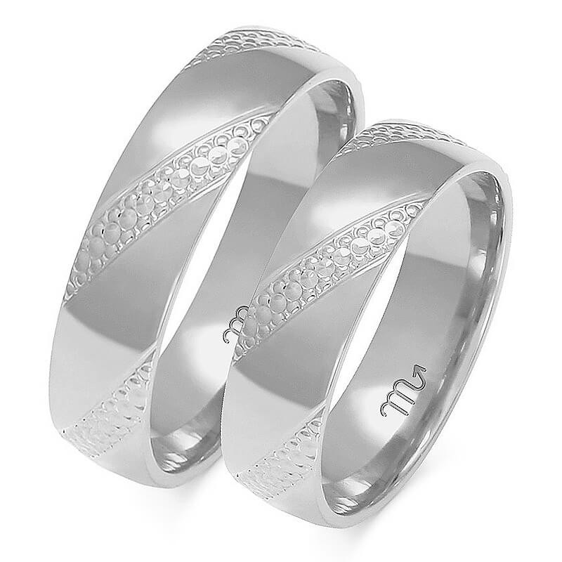 Obrączki z białego złota o klasycznym półokrągłym kształcie ozdobione delikatnym wzorkiem na całym obwodzie - wzór A-147