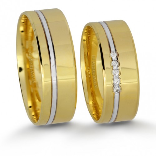 Obrączki ślubne firmy ZIRKON z kolekcji EUFORIA wzór H-65-L wykonane z żółtego i białego złota w technologii bezszwowej. Ten wzór w standardzie jest wyoblony od strony wewnętrznej.