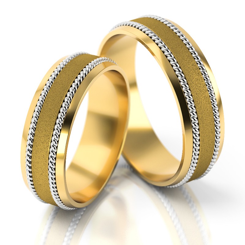 Cena i waga wylicza się automatycznie dla wybranych rozmiarów dla szerokości 6 mm i wysokości profilu 1.3 mm. Parametry te można zmienić i wykonać ten wzór lżejszy w niższej cenie. Można też zamówić obrączkę bardziej masywną zwiększając grubość (max 2.5 mm) i szerokość (max 8 mm). W wersji komfortowej producent proponuje wyoblenie (soczewkę) od wewnętrznej strony, co bardzo polepsza to wygodę użytkowania. Zdecydowanie polecamy wybranie tej opcji. Kolory złota i matowanie można zmienić. Białe złoto dla poprawienia estetyki można pokryć rodem - szlachetnym metalem z grupy platynowców. Do wyboru są dwa rodzaje białego złota. Białe złoto palladowe jest szlachetniejszym stopem nie zawierającym niklu, co jest szczególnie istotne dla alergików. Rodzaj matowania można zmienić. Damską obrączkę można ozdobić brylantami lub cyrkoniami o średnicy 1.2 mm